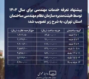 قیمت ساخت ساختمانها و تعرفه نظارت توسط نظام مهندسی استان تهران و شورای مرکزی اعلام شدانجمنبهمن 16, 1402